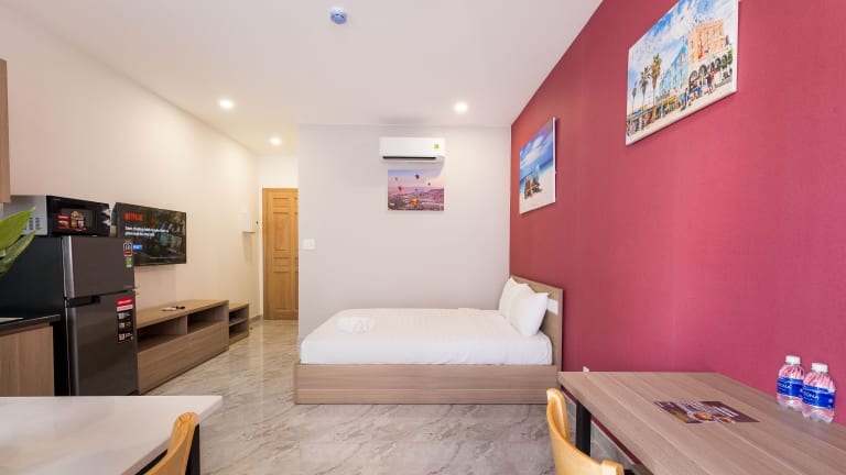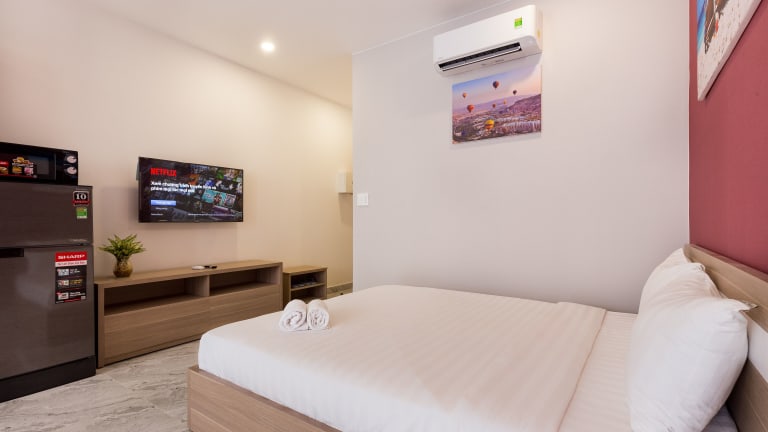 Die klimatisierten Zimmer im Hotel The Arrivals Phu Nhuan bieten modernen Komfort und sind mit einem Flachbild-Sat-TV, einem Kühlschrank, einer Kaffeemaschine und einem Schreibtisch ausgestattet. Kostenfreie Pflegeprodukte und ein Safe sind ebenfalls vorhanden. Einige Zimmer verfügen über einen Balkon und bieten einen herrlichen Blick auf die Stadt.