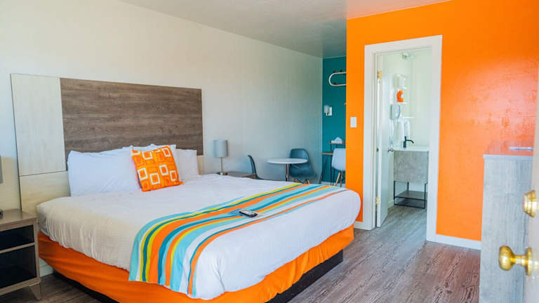 Die Zimmer im The Atomic Blue Motor-Inn sind gemütlich und bieten alles, was Sie für einen angenehmen Aufenthalt benötigen. Jedes Zimmer verfügt über einen Fernseher mit kostenlosen Filmkanälen sowie einen kleinen Kühlschrank und eine Mikrowelle. Kaffee- und Teezubehör steht ebenfalls zur Verfügung, damit Sie sich jederzeit eine Tasse Kaffee oder Tee zubereiten können.