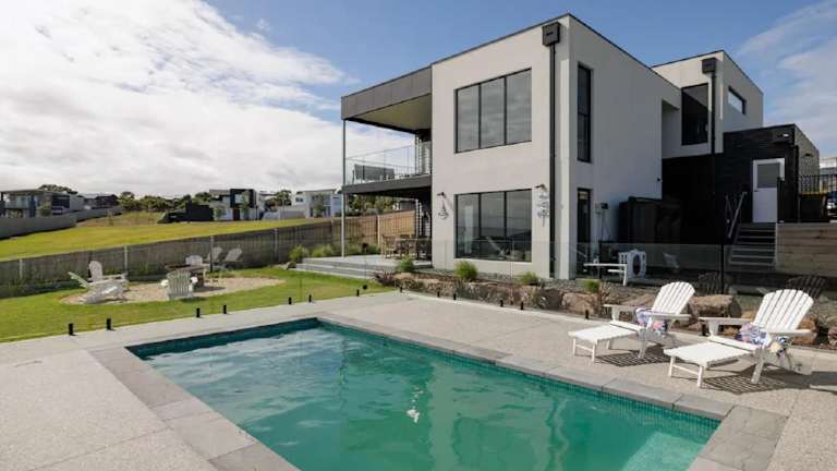The Bay View San Remo by Ready Set Stay ist ein modernes Ferienhaus, das mit einem eigenen Pool, einem Garten und einer Sonnenterrasse ausgestattet ist. Die Unterkunft bietet einen Außenpool und ist für Nichtraucher gedacht. Außerdem sind private Check-in-/Check-out-Optionen verfügbar. Die Nutzung von kostenlosen WLAN sowie einem kostenlosen Privatparkplatz ist gegeben.