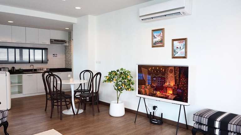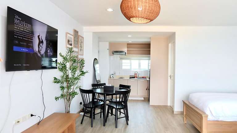 The Beach Bangsaen by Thanthita ist ein modernes Condominium, das bequem am Wonnapa Strand liegt und den Gästen freien Zugang zu Disney Plus bietet. Die Unterkunft bietet Annehmlichkeiten wie kostenfreies WLAN und einen privaten Parkplatz. Die Check-in-Zeiten sind zwischen 15:00 und 23:30 Uhr, während der Check-out von 00:00 bis 12:00 Uhr möglich ist. Die Unterkunft führt strenge Richtlinien für Feierlichkeiten und Verhaltensregeln.