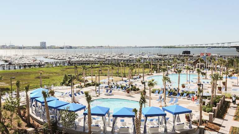 Die gastronomischen Einrichtungen umfassen die Bridge Bar mit Blick auf die USS Yorktown und Charleston, die Reel Bar, das Indigo Grille sowie das Charleston Harbor Fish House, das nachhaltige Meeresfrüchte in einer attraktiven Lage am Wasser serviert.