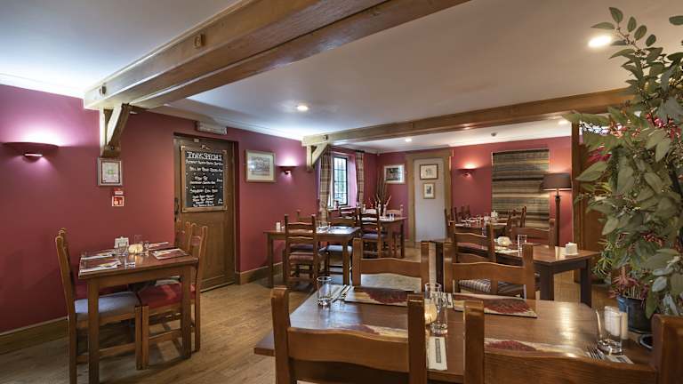 Das Hotel bietet ein englisches Frühstück und eine Vielzahl von Verpflegungsoptionen. Im Galleried Restaurant werden saisonale Gerichte aus regionalen Zutaten serviert, während im Bistro und in der Village Bar sowohl traditionelle britische als auch internationale Speisen angeboten werden.