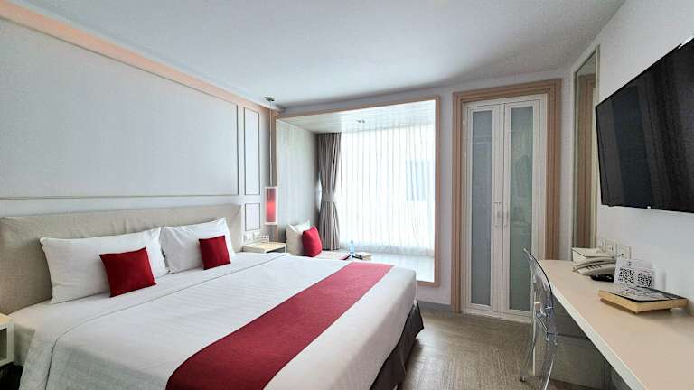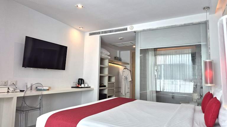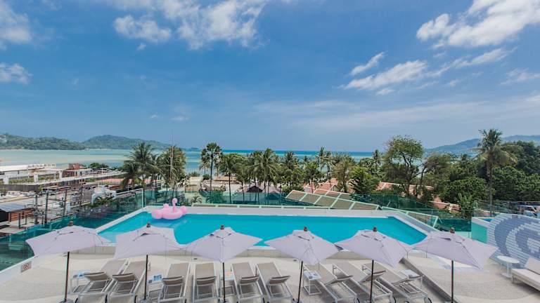 Das The Bloc Hotel bietet modern eingerichtete Zimmer mit kostenfreiem WLAN und liegt nur wenige Schritte vom Strand entfernt. Mit einem Pool auf dem Dach, einem Fitnesscenter und einer Poolbar bietet das Hotel seinen Gästen eine Vielzahl an Annehmlichkeiten. Die Lage des Hotels ist ideal, da es sich in unmittelbarer Nähe zur Bangla Road, einer berühmten Ausgehstraße, befindet. Einkaufsmöglichkeiten, Restaurants und Bars sind ebenfalls in der Umgebung zu finden. Das Jungceylon-Einkaufszentrum ist zu Fuß erreichbar. Der internationale Flughafen Phuket ist in weniger als einer Stunde mit dem Auto erreichbar. Die Zimmer sind klimatisiert und verfügen über einen eigenen Balkon, einen Flachbild-Kabel-TV und einen Kühlschrank. Das eigene Badezimmer ist mit einer Dusche und kostenlosen Pflegeprodukten ausgestattet. Im Hotel gibt es ein Restaurant und eine rund um die Uhr besetzte Rezeption.
