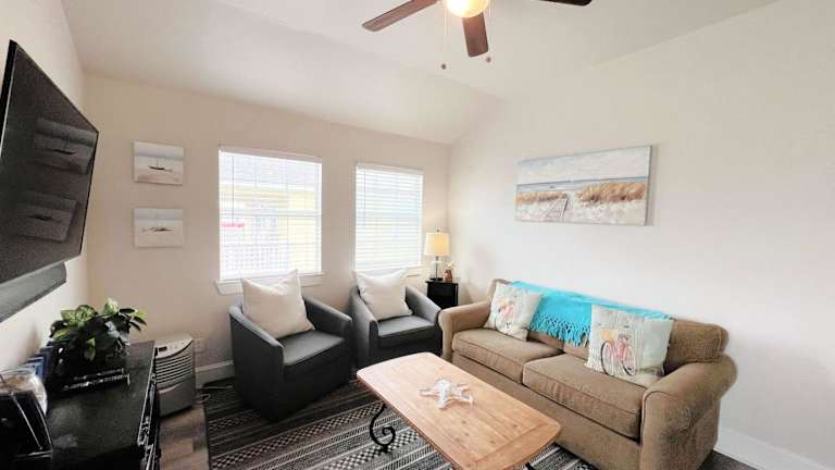 Genießen Sie einen entspannten Aufenthalt im The Blue Haven - Cute Beach Bungalow mit einfachem Zugang zum Sandstrand und den Golfgewässern in Surfside Beach. Dieses klimatisierte Ferienhaus bietet Ihnen eine komfortable Unterkunft mit 2 Schlafzimmern, einem gemütlichen Garten und kostenfreien Privatparkplätzen. Entdecken Sie die Umgebung mit dem Fahrrad und erreichen Sie in kurzer Entfernung den Surfside Beach.