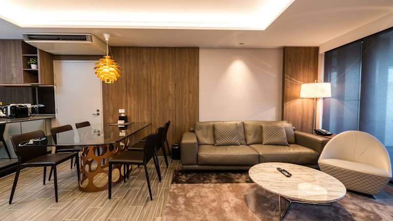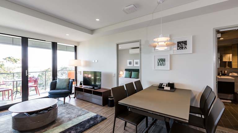 Das The Branksome Hotel & Residences in Sydney bietet eine Vielzahl von Unterkünften, darunter Studios, Suiten mit 1 und 2 Schlafzimmern sowie Suiten mit 2 Schlafzimmern und einem Arbeitszimmer. Jede Unterkunft verfügt über eine komplett ausgestattete Küche und Wäschemöglichkeiten. Die Zimmer sind modern eingerichtet und bieten Annehmlichkeiten wie einen digitalen Concierge-Service, motorisierte Verdunkelungsrollos und einen TV mit Filmauswahl gegen Gebühr. Das Hotel verfügt über ein Restaurant, eine Bar, einen Pool, ein Fitnesscenter und einen Kinderspielplatz. Es bietet auch Tagungs- und Konferenzeinrichtungen mit modernster Technologie. Das Hotel liegt in der Nähe des Flughafens Sydney und des zentralen Geschäftsviertels Sydney CBD.