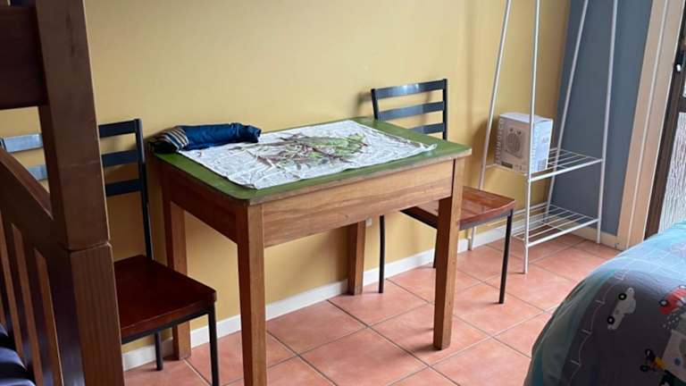 In der Unterkunft gibt es eine voll ausgestattete Gemeinschaftsküche, in der Sie sich einfache Mahlzeiten zubereiten können. Es gibt auch einen Essbereich, in dem Sie Ihre Mahlzeiten genießen können. Während der wärmeren Monate können Sie auch auf der Terrasse oder im Garten speisen.