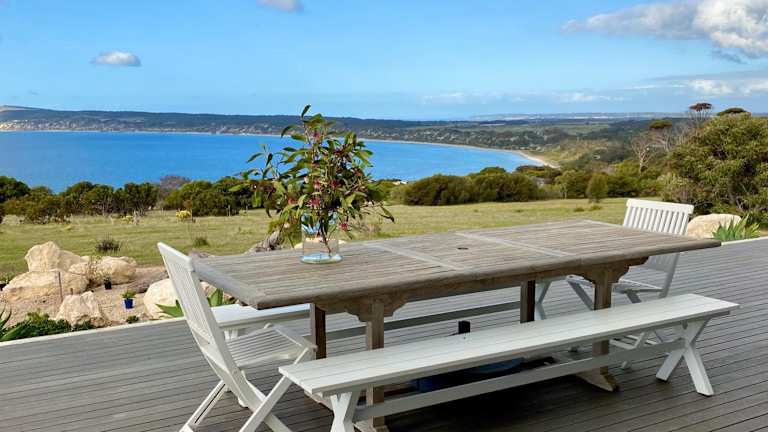 Das The Cape ist ein wunderschönes Ferienhaus in Emu Bay, das mit einem Garten, einer Terrasse und Grillmöglichkeiten begeistert. Genießen Sie den atemberaubenden Meerblick und profitieren Sie von kostenfreiem WLAN. Das klimatisierte Ferienhaus bietet Platz für bis zu 8 Personen und verfügt über 4 Schlafzimmer, ein gemütliches Wohnzimmer, eine voll ausgestattete Küche und 2 Badezimmer. Handtücher und Bettwäsche werden gestellt. Die Lage des Ferienhauses ermöglicht es Ihnen, Aktivitäten wie Wandern und Angeln in der Umgebung nachzugehen. Der Strand Emu Bay ist weniger als 1 km entfernt und der Flughafen Kingscote erreichen Sie nach einer kurzen Fahrt von 24 km.