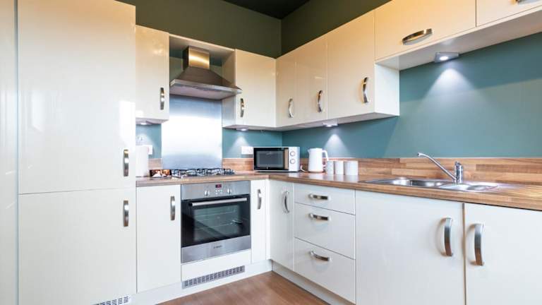 Die Ferienwohnung umfasst zwei Schlafzimmer und ist mit einem Flachbild-TV und einer voll ausgestatteten Küche ausgestattet. In der Küche stehen den Gästen ein Kühlschrank, ein Ofen, eine Waschmaschine, eine Mikrowelle und eine Herdplatte zur Verfügung. Handtücher und Bettwäsche werden ebenfalls bereitgestellt.