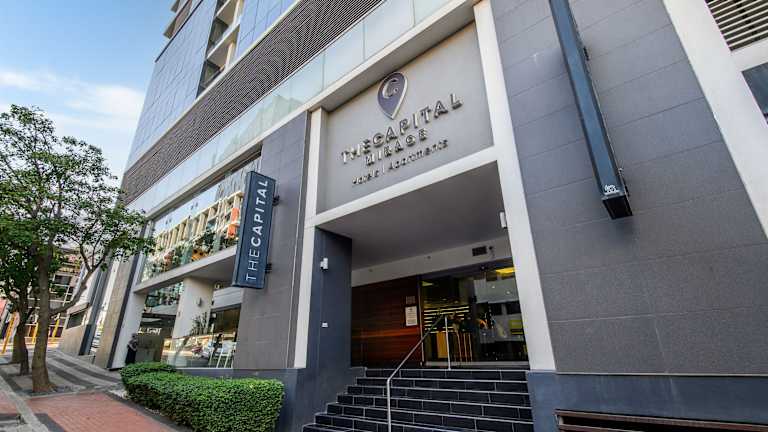 Das The Capital Mirage Hotel in Kapstadt bietet exklusives Design, modernen Komfort und eine günstige Lage zwischen dem Stadtzentrum und dem trendigen Viertel De Waterkant. Genießen Sie internationale Gastronomie in den 3 Restaurants und erleben Sie die besondere Atmosphäre auf der Dachterrasse mit Bar. Die geräumigen Suiten und Apartments sind stilvoll eingerichtet und verfügen über eine moderne Ausstattung. Kostenfreies WLAN und Parkplätze sind vorhanden.
