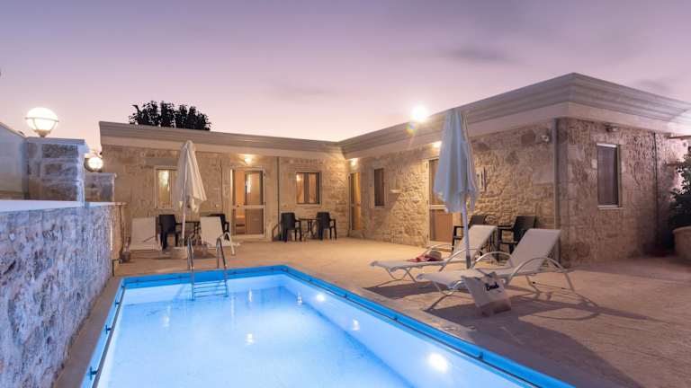 The center of Crete bietet eine Kombination aus modernem Komfort und griechischer Gastfreundschaft. Die Unterkunft ist privat geführt und bietet ein vielfältiges Angebot an Annehmlichkeiten, darunter einen saisonalen Außenpool. Das Ambiente der Unterkunft ist geprägt von Klimaanlage, Gartenmöbeln und einer Sonnenterrasse, um den Gästen eine entspannte Atmosphäre zu gewährleisten.