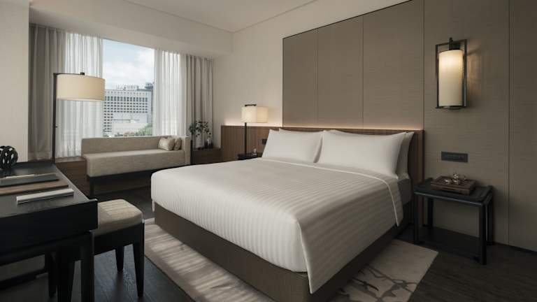 Die klimatisierten Zimmer sind mit modernen Annehmlichkeiten ausgestattet, darunter ein Kleiderschrank, eine Kaffeemaschine, eine Minibar, ein Safe, ein Flachbild-TV sowie ein eigenes Bad mit Bidet. Die Zimmer bieten einen Blick auf die Stadt und sind geschmackvoll eingerichtet. Reinigung und Zimmerservice sind verfügbar, und die Zimmerkategorie umfasst Deluxe-, Grand Premier- und Premier-Zimmer.