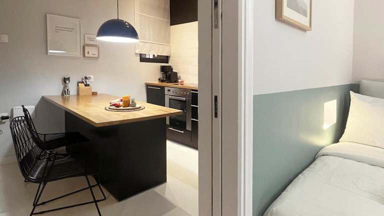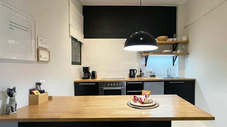 Die Ferienwohnung beinhaltet ein Schlafzimmer, ein Wohnzimmer und eine voll ausgestattete Küche mit Kühlschrank und Kaffeemaschine. Ein Badezimmer mit Dusche und kostenlosen Pflegeprodukten ist ebenfalls vorhanden. Handtücher und Bettwäsche werden zur Verfügung gestellt.