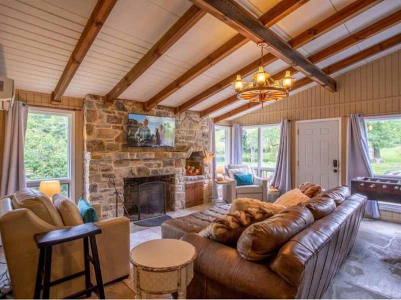 The Farmhouse at Doe Creek bietet Übernachtungsmöglichkeiten mit Zugang zu einem Whirlpool. Die Unterkunft ist klimatisiert und bietet einen komfortablen Raum für die Gäste.