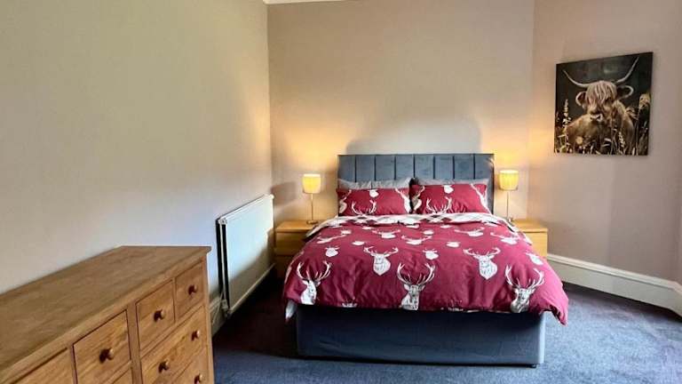 Die Zimmer sind Teil eines Ferienhauses mit insgesamt vier Schlafzimmern. Das Wohnzimmer ist mit einem Flachbild-TV ausgestattet und die voll ausgestattete Küche bietet alle notwendigen Annehmlichkeiten. Es gibt zudem zwei separate Badezimmer, die den Komfort der Gäste unterstützen.
