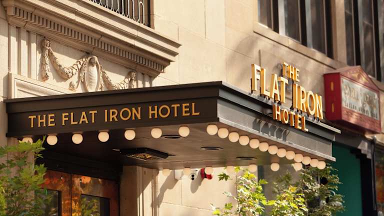 Das Flat Iron Hotel bietet klimatisierte Zimmer, eine Gemeinschaftslounge, ein Restaurant sowie kostenloses WLAN. Eine rund um die Uhr besetzte Rezeption und ein Businesscenter sind ebenfalls vorhanden. Des Weiteren werden Touren für Gäste organisiert und es gibt die Möglichkeit, einen Privatparkplatz gegen Aufpreis zu nutzen.