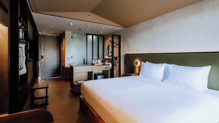 Die Zimmer sind ausgestattet mit Klimaanlage, einem Schreibtisch, einer Terrasse mit Poolblick, einem eigenen Badezimmer, einem TV sowie mit Bettwäsche und Handtüchern. Jedes Zimmer bietet zudem einen Safe.