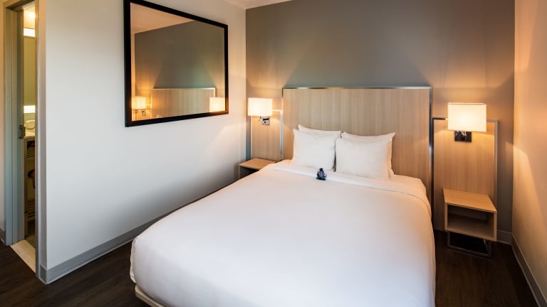 Die 45 Nichtraucherzimmer des Hotels sind komfortabel eingerichtet und verfügen über Annehmlichkeiten wie eine Klimaanlage, ein Doppelbett, einen Safe, einen Schreibtisch, eine Mikrowelle und eine Tee-/Kaffeemaschine. Zur weiteren Ausstattung gehören ein Telefon, ein Flachbildfernseher mit Kabelempfang und kostenfreies WLAN. Im Badezimmer finden die Gäste eine Dusche oder eine Badewanne, einen Haartrockner und Bademäntel vor.