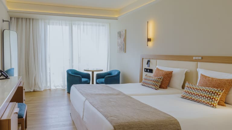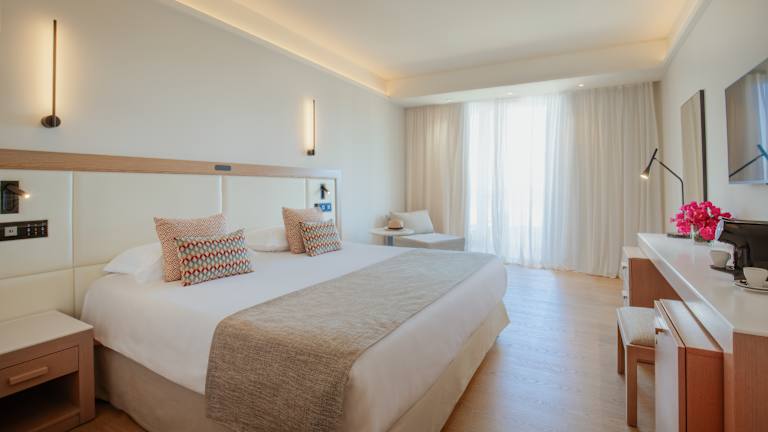Die Zimmer im Golden Coast Beach Hotel sind klimatisiert und verfügen über einen Balkon. Sie sind modern eingerichtet und bieten jeglichen Komfort für einen angenehmen Aufenthalt. Einige Zimmer bieten zudem einen Panoramablick auf das Meer.