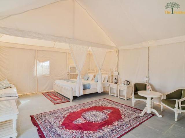 The Golden Sand Resort & Camp ist ein Hotel, das Übernachtungsmöglichkeiten in einer naturnahen Umgebung mit Garten bietet. Die Unterkunft verfügt über einen kostenlosen Privatparkplatz, eine Terrasse sowie ein Restaurant. Das Hotel bietet eine rund um die Uhr besetzte Rezeption und Zimmerservice.
