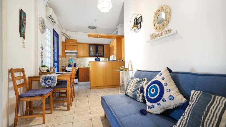Das APARTMENT IN THE PORT WITH YARD IN THE CITY CENTER befindet sich in zentraler Lage in Ägina Stadt. Der Strand Avra ist nur 400 m entfernt und der Strand Panagitsa ist ebenfalls in nur 500 m erreichbar. Der Strand Kolona ist etwa 800 m entfernt und die Kathedrale Agios Nektarios erreichen Sie nach 5,5 km. In der Nähe des Apartments finden Sie auch das Archäologische Museum von Aigina, das 10 km entfernt ist, und den Tempel der Aphaia, der in 12 km Entfernung liegt.