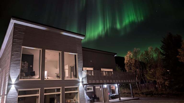 Das The House of Aurora I in Tromsø ist ein ideales Ferienapartment für Naturliebhaber und Aktivurlauber. Mit direktem Zugang zu den Skipisten und einer Vielzahl von Freizeitmöglichkeiten wie Wandern, Skifahren und Angeln bietet es den perfekten Ausgangspunkt für Outdoor-Abenteuer. Das Apartment selbst ist geräumig und gut ausgestattet, mit einer Terrasse und Meerblick. Kostenfreies WLAN und kostenlose Privatparkplätze stehen zur Verfügung. Ein Fahrradverleih und eine Skiaufbewahrung sind ebenfalls vorhanden. Entdecken Sie die Schönheit der Umgebung und erkunden Sie die Sehenswürdigkeiten wie die Universität Tromsø und das Rathaus von Tromsø, die nur eine kurze Fahrt entfernt liegen.