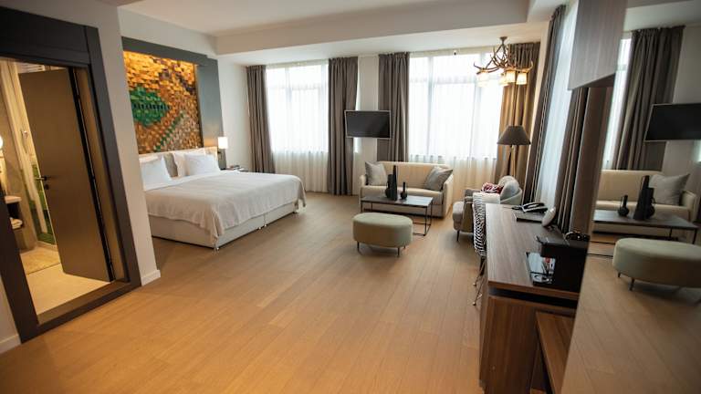 Das Hotel Hunter's Lodge Kamnik in Skopje heißt seine Gäste herzlich willkommen und bietet eine komfortable Unterkunft mit freundlichem Personal. Gäste können sich auf Annehmlichkeiten wie kostenloses WLAN, einen Aufzug und eine Gepäckaufbewahrung freuen. Das Hotel verfügt über ein Restaurant, in dem täglich ein leckeres Frühstück serviert wird. Sportbegeisterte können die verschiedenen Freizeitangebote wie Tennis und Fitnessstudio nutzen. Die Zimmer sind modern eingerichtet und bieten Annehmlichkeiten wie Klimaanlage, Safe und Minibar. Das Hotel bietet auch rollstuhlgerechte Zimmer.