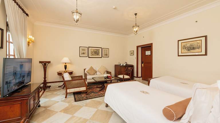 Die Zimmer im Hotel Imperial sind modern und geräumig gestaltet und bieten den Gästen einen komfortablen Aufenthalt. Die Zimmer verfügen über hohe Decken, einen Flachbild-Kabel-TV, eine Minibar und Kaffee- und Teezubehör. Zur Ausstattung gehören auch ein eigenes Badezimmer mit Bademänteln, Pflegeprodukten und einem Haartrockner. Der Concierge des Hotels steht den Gästen zur Verfügung, um bei der Organisation von Ausflügen und Theaterbesuchen zu helfen. Zusätzliche Annehmlichkeiten wie ein Mobiltelefonverleih, Baby-/Kinderbetreuung und ein kostenloser Schuhputzservice über Nacht sorgen für zusätzlichen Komfort während des Aufenthalts.