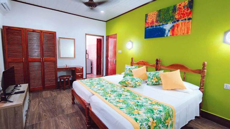 Die Islander Villa bietet 12 gemütliche Zimmer, die in kreolischem Stil gestaltet sind. Jedes Zimmer verfügt über ein Wohnzimmer, eine Küche und ein Badezimmer, sowie einen Balkon oder eine Terrasse. Die Zimmer sind mit allen Annehmlichkeiten ausgestattet, die man für einen komfortablen Aufenthalt benötigt, darunter Klimaanlage, Ventilator, Safe, Kühlschrank, Mikrowelle und Tee-/Kaffeemaschine. WLAN ist ebenfalls in allen Zimmern verfügbar.