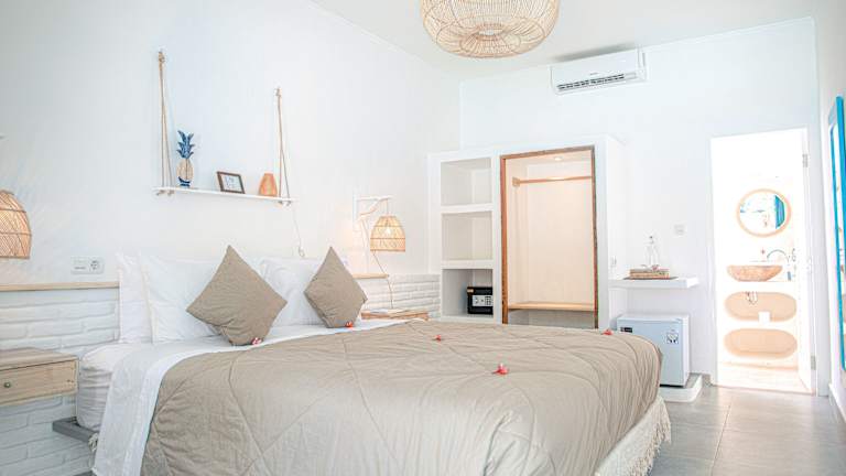 Das Koho Air Hotel befindet sich nur 200 m vom Strand von Gili Air entfernt und bietet somit eine perfekte Lage für einen erholsamen Badeurlaub. In der Umgebung gibt es viele Radwege, die sich ideal für Fahrradtouren eignen. Der Hafen Bangsal ist 6,5 km entfernt und der Hafen Teluk Kodek erreichen Sie nach 9,3 km. Der internationale Flughafen Lombok ist 61 km entfernt.