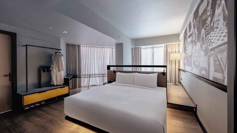 Die 117 Zimmer des Hotels erstrecken sich über 11 Etagen und sind bequem mit dem Aufzug erreichbar. Zur Ausstattung gehören eine Klimaanlage, ein Safe, ein Schreibtisch, ein Kühlschrank und eine Tee-/Kaffeemaschine. WLAN steht in allen Bereichen des Hotels kostenlos zur Verfügung. Es gibt auch rollstuhlgerechte Einrichtungen für Gäste mit eingeschränkter Mobilität.