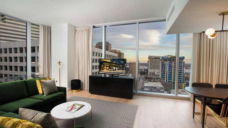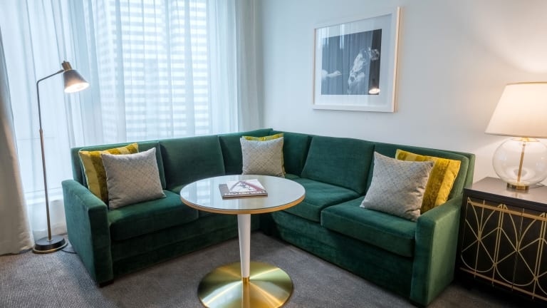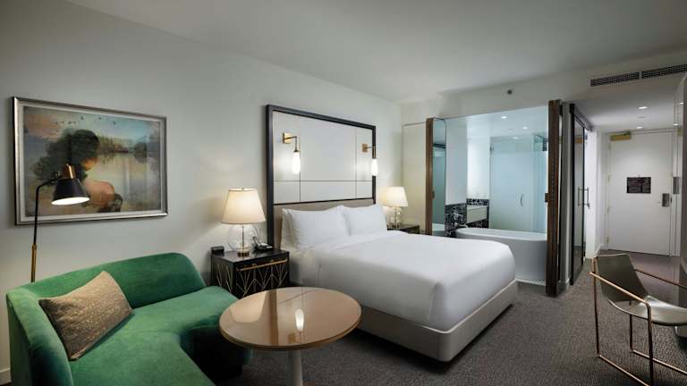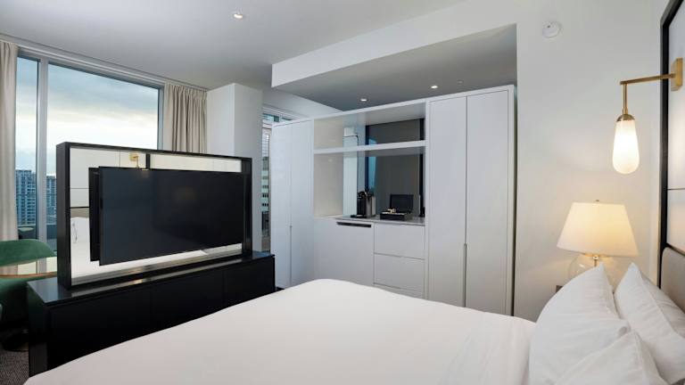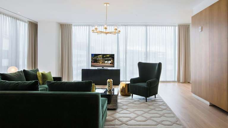 Die Gästezimmer sind mit einem Sitzbereich, einem Flachbildfernseher und einem Schreibtisch ausgestattet. Zu den Annehmlichkeiten gehören Bademäntel, Luxus-Toilettenartikel und eine Espressomaschine. Ein Tablet im Zimmer ermöglicht es den Gästen, den Zimmerservice und Spa-Dienstleistungen zu bestellen.