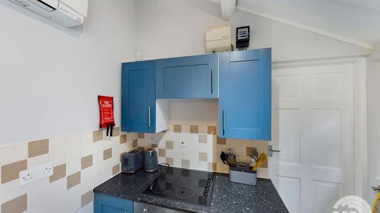 Die Ferienwohnung ist klimatisiert und umfasst 1 Schlafzimmer, ein Wohnzimmer und eine voll ausgestattete Küche mit Kühlschrank und Wasserkocher. Es gibt 1 Badezimmer mit Dusche und kostenlosen Pflegeprodukten. Handtücher und Bettwäsche werden zur Verfügung gestellt.