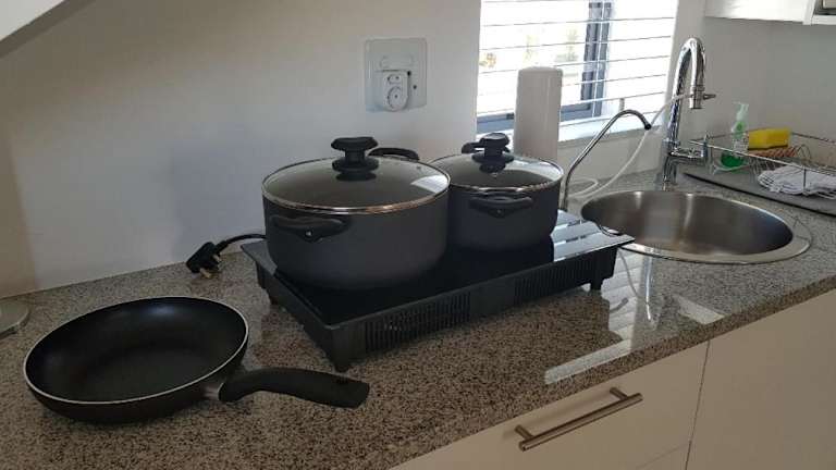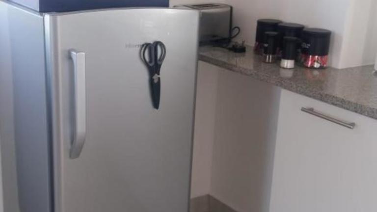 Die Einheit verfügt über eine gut ausgestattete Küchenzeile mit Kühlschrank und Mikrowelle, jedoch sind keine spezifischen Informationen zur Verpflegung vorhanden.
