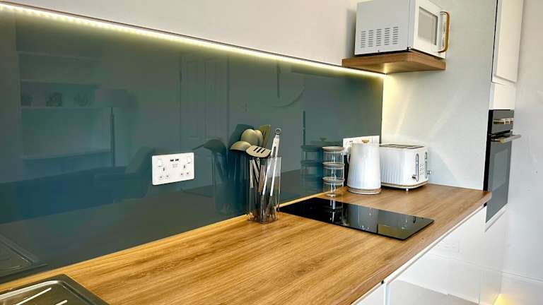 Die Ferienwohnung besteht aus einem Schlafzimmer, einem Wohnzimmer, einer voll ausgestatteten Küche mit Kühlschrank und Kaffeemaschine sowie einem Badezimmer mit Dusche und kostenlosen Pflegeprodukten. Handtücher und Bettwäsche werden bereitgestellt.