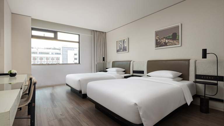 Die Zimmer sind mit Teppichböden ausgelegt und verfügen über ein Doppelbett sowie Zustellbetten. Zur Ausstattung gehören Klimaanlage, Heizung, Kühlschrank, Minibar, Safe, Schreibtisch und WLAN. Badezimmer mit Dusche und Badewanne sind ebenfalls vorhanden. Rollstuhlgerechte Zimmer sind verfügbar.