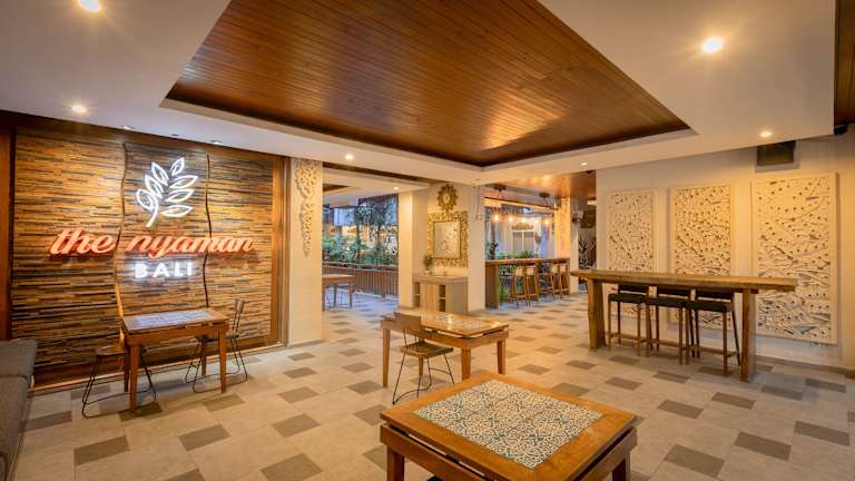 Die Unterkunft The Nyaman Bali bietet Übernachtungsmöglichkeiten in Form von komfortablen Zimmern mit modernen Annehmlichkeiten. Zur Ausstattung gehören ein Außenpool, ein Garten und eine Gemeinschaftslounge. Des Weiteren stehen ein Zimmerservice und eine 24 Stunden besetzte Rezeption zur Verfügung. Die Unterkunft ist eine Nichtraucherzone und bietet kostenloses WLAN sowie Privatparkplätze an.