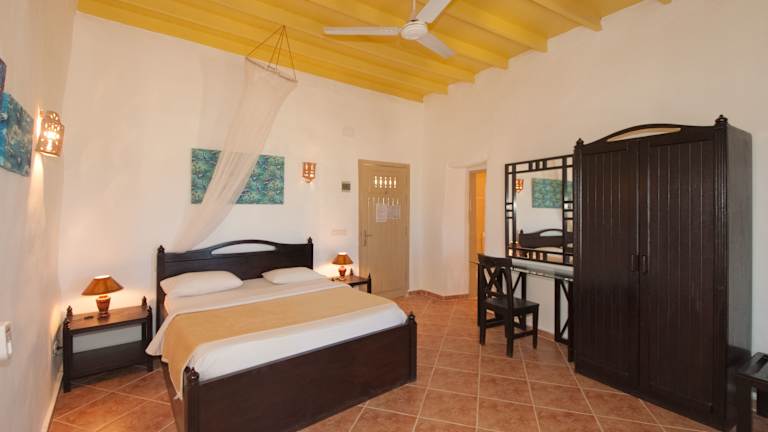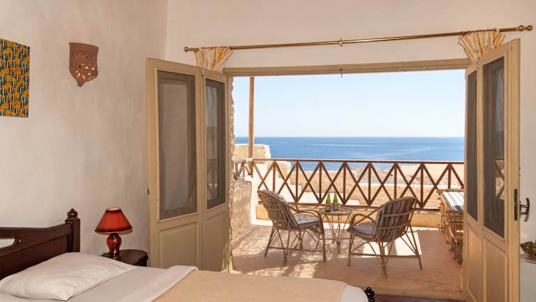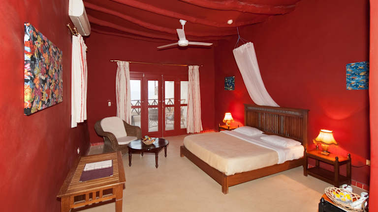 Die 49 geräumigen und individuell gestalteten Chalets sind unter Verwendung von natürlichen Baumaterialien im Nubischen Stil mit viel Liebe zum Detail gebaut worden. Jedes dieser Chalets ist ein Unikat: individuelle Grundrisse, unterschiedliche Stilelemente und Farben prägen die sehr geschmackvoll eingerichteten Zimmer. Außerdem erlaubt die Terrasse von jedem Chalet aus einen uneingeschränkten und atemberaubenden Blick auf das Meer! Alle Chalets verfügen über einen Hauptraum, ein großzügiges Badezimmer mit Dusche und WC, solarenergiegeheiztes Wasser und mehrere 220 Volt-Steckdosen. Die natürliche Kühlung ist durch die Bauweise im Nubischen Stil gewährleistet. Für zusätzlichen Komfort sorgen Deckenventilatoren und Klimaanlagen, die die wärmeren Nächte angenehmer gestalten. Alle Chalets verfügen zusätzlich über eine Minibar. Die Zimmer sind mit Einzel- oder Doppelbetten (bzw. zwei separaten Einzelbetten "twin") ausgestattet.