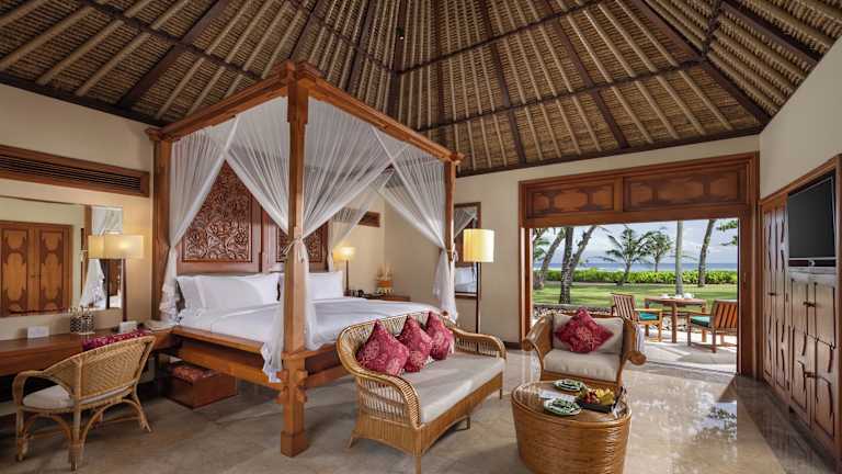 Am Strand gelegen und von 60.702 Quadratmetern üppiger Gärten umgeben, mit einem natürlichen Amphitheater für traditionellen Tanz, garantieren wir in unserem Fünf-Sterne-Hotel auf Bali ein unnachahmliches Erlebnis dieser wunderschönen Insel. Traditionelle strohgedeckte Unterkunft mit modernen Annehmlichkeiten. Restaurants mit köstlicher Küche neben Meerblick. Alles ergänzt durch speziell gestaltete romantische Erlebnisse und unsere aufrichtige Aufmerksamkeit für alle Ihre Bedürfnisse. Nur im besten Hotel in Bali.