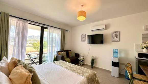 The Olive Beachfront Apartment & Spa bietet einen Balkon mit herrlichem Berg- und Gartenblick sowie einen ganzjährig geöffneten Außenpool, eine Sauna und einen Whirlpool. Die klimatisierte Unterkunft beinhaltet Annehmlichkeiten wie einen Privatparkplatz und kostenfreies WLAN. Es handelt sich um eine Ferienwohnung, die privat geführt wird.