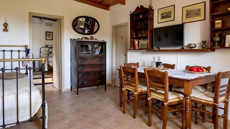 Das Olive House bietet Ihnen ein gemütliches Schlafzimmer für erholsame Nächte. Die voll ausgestattete Küche ermöglicht es Ihnen, Ihre eigenen Mahlzeiten zuzubereiten und sich wie zu Hause zu fühlen. Das Badezimmer ist mit einer Dusche und kostenfreien Pflegeprodukten ausgestattet, um Ihnen den Aufenthalt so angenehm wie möglich zu gestalten. Die Terrasse lädt zum Entspannen und Genießen der frischen Luft ein.