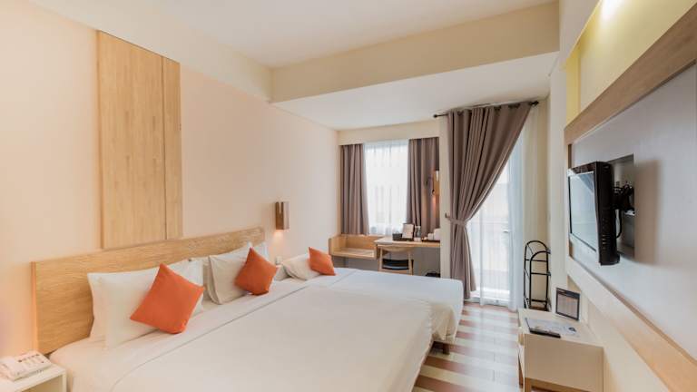Das Hotel The ONE Legian ist eine moderne Unterkunft, die sich in der belebten Straße von Legian befindet. Es ist der ideale Ort für Reisende, die die Nähe zu Geschäften, Restaurants und dem Nachtleben suchen. Die Zimmer sind mit modernen Annehmlichkeiten ausgestattet und bieten einen angenehmen Aufenthalt in einem minimalistischen Design. Gäste können sich im Fitnesscenter sportlich betätigen oder am Pool entspannen. Das Restaurant und die Bars des Hotels bieten eine Vielfalt an kulinarischen Erlebnissen sowie Live-Unterhaltung.