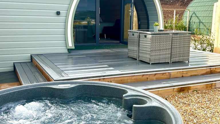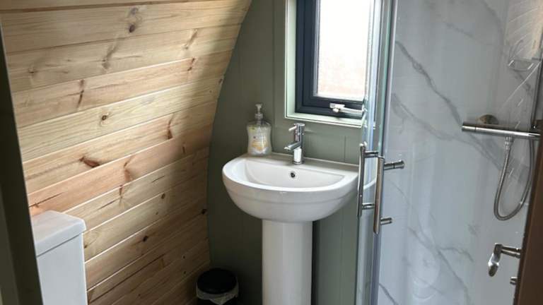 Die Unterkunft umfasst einen Wohnbereich mit einem Flachbild-TV, eine Küchenzeile und ein eigenes Badezimmer mit Dusche und Bademänteln. Zudem bieten die pods einen Sitzbereich und Gartenblick.