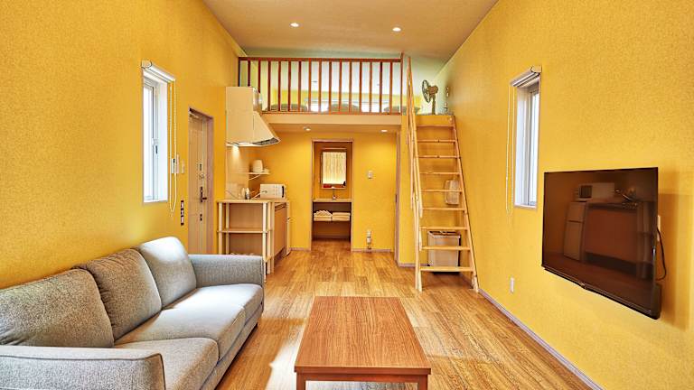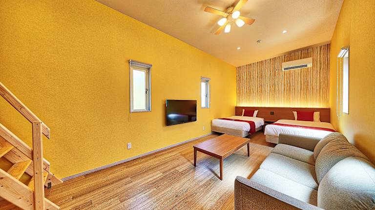 Im Pool Resort OKINAWA können Sie auf der Terrasse entspannen und die Atmosphäre genießen. Wenn Sie die Umgebung erkunden möchten, gibt es auch eine Gemeinschaftslounge, in der Sie sich mit anderen Gästen austauschen können.
