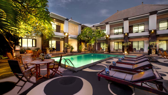 Das The Radiant Hotel & Spa bietet geräumige und klimatisierte Zimmer, einen Außenpool und ein Restaurant. Das Hotel befindet sich in der Nähe von Kuta Beach und bietet einen kostenpflichtigen Shuttleservice zum Discovery Shopping Mall und zum Flughafen. Die Zimmer sind mit modernen Annehmlichkeiten wie Kabel-TV, Minibar und Tee-/Kaffeekocher ausgestattet. Das Hotel bietet auch Massagen und kostenfreies WLAN an. Das Frühstück wird im Poolrestaurant serviert und es werden lokale und internationale Gerichte angeboten. Das Hotel liegt in der Nähe von Einkaufsmöglichkeiten, Kinos und Wasserparks.