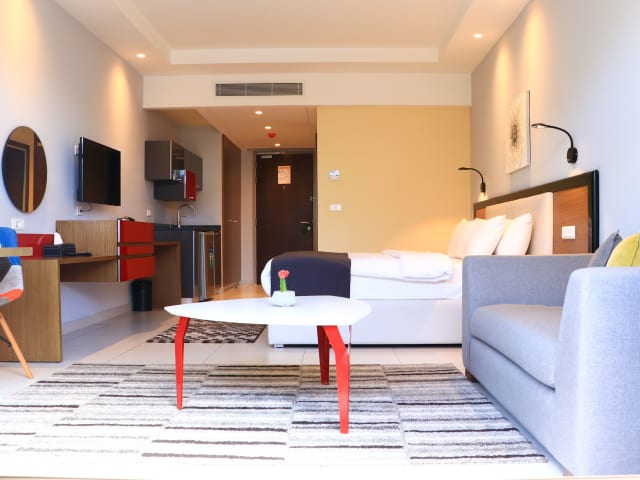 Die klimatisierten Zimmer im Ray Hotel and Studios sind geräumig und komfortabel. Jedes Zimmer verfügt über einen Schreibtisch, einen Wasserkocher, einen Kühlschrank, eine Mikrowelle, einen Safe und einen Flachbild-TV. Das private Badezimmer ist mit einem Bidet ausgestattet. Bettwäsche und Handtücher werden gestellt, um Ihren Aufenthalt so angenehm wie möglich zu gestalten.