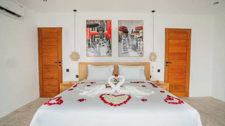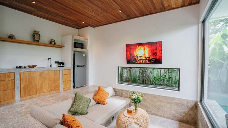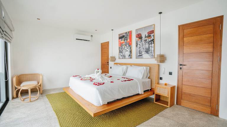 Die Villa ist klimatisiert und umfasst 1 Schlafzimmer, ein Wohnzimmer und eine voll ausgestattete Küche mit Kühlschrank und Wasserkocher. Zudem gibt es ein Badezimmer mit Bidet und Dusche. Handtücher und Bettwäsche werden bereitgestellt.