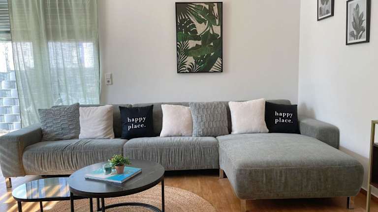 Das klimatisierte Apartment verfügt über zwei Schlafzimmer, ein geräumiges Wohnzimmer und eine voll ausgestattete Küche mit Kühlschrank und Wasserkocher. Die beiden Badezimmer sind mit einem Bidet und einer Dusche ausgestattet. Handtücher und Bettwäsche werden gestellt, um Ihren Aufenthalt so angenehm wie möglich zu gestalten.
