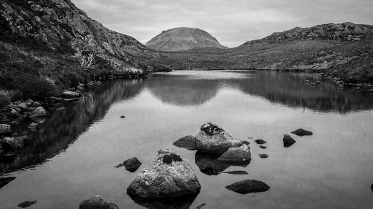 Kinlochbervie, umgeben von einer malerischen Landschaft, in der Nähe von Wanderwegen.