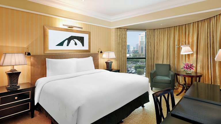 Die Zimmer im Ritz-Carlton Hotel sind elegant eingerichtet und bieten den Gästen einen komfortablen und stilvollen Rückzugsort. Die Betten sind mit hochwertiger Bettwäsche ausgestattet und es stehen verschiedene Kissenarten zur Auswahl. Jedes Zimmer verfügt über einen interaktiven Flachbild-TV mit mehrsprachigen Sat-Kanälen.