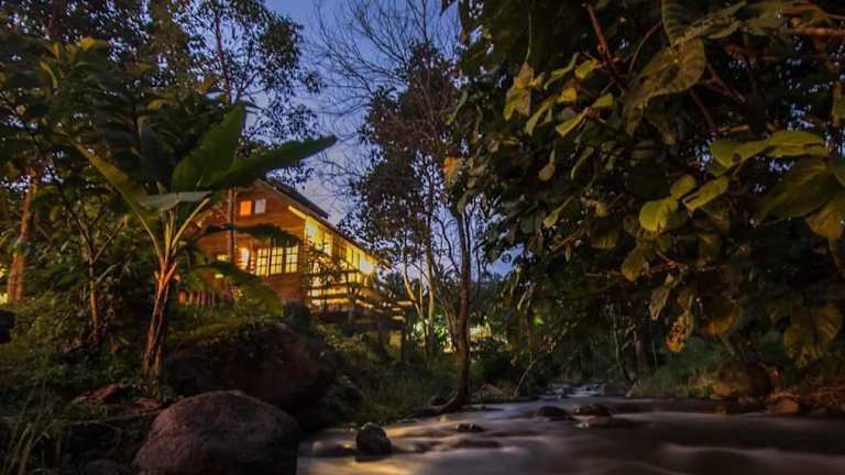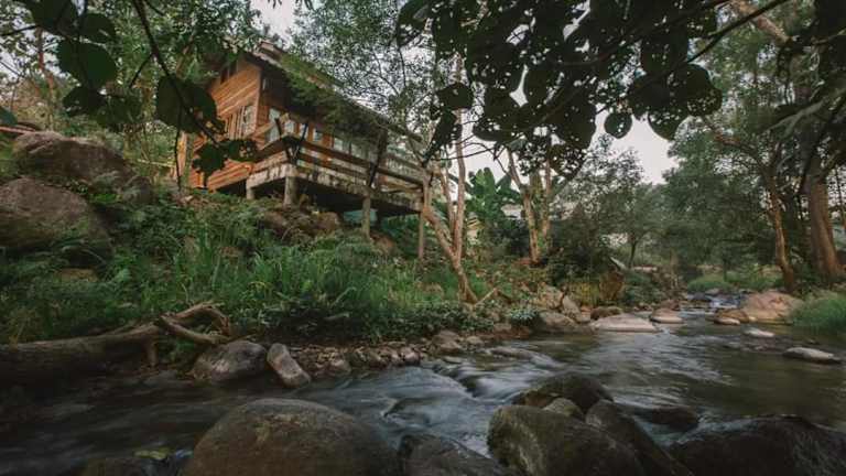 The River whisper bietet Übernachtungsmöglichkeiten in einer Nichtraucherunterkunft mit einem Garten, kostenlosen Privatparkplätzen, einer Terrasse und einer Bar.